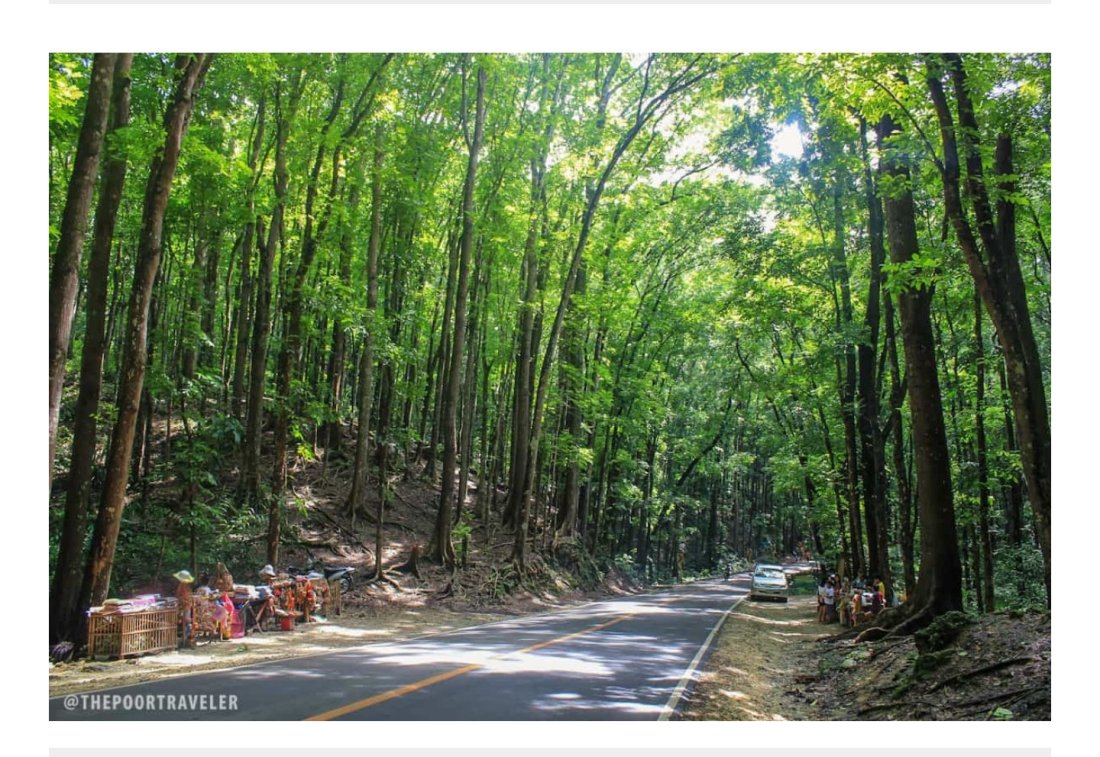 We got on another very full bus and ride down the road a little ways to the manmade forest, at the blue dot. There is an area that was replanted by a university to mahogany trees, and it was beautiful. It actually reminded me of the woods up north, with the tall straight trees and fairly open under the trees. There were also a number of tourists along the road taking pictures in all sorts of poses.