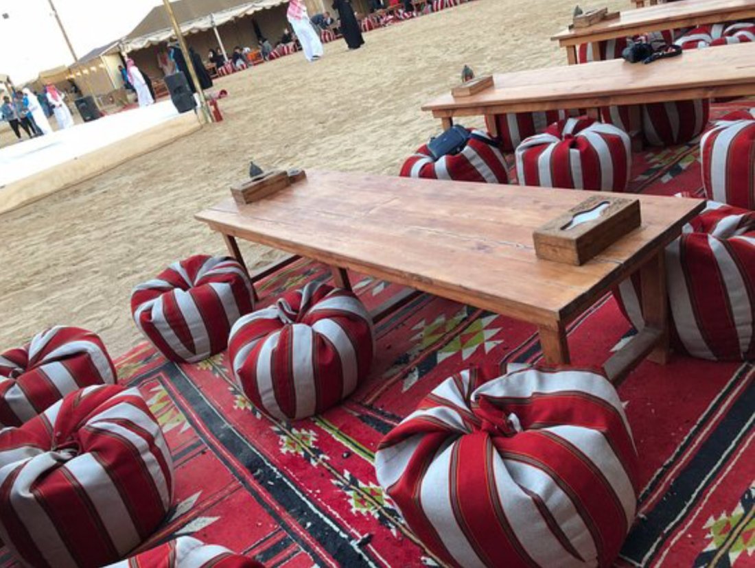 Next stop was the top pin for brunch and camel riding. They have a camp there where they serve meals and do evening entertainment shows and possibly host overnight guests. Brunch was located in a cloth tent and served on low tables with these round bean bag chairs to sit on, Arab style I guess.